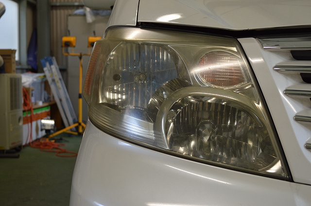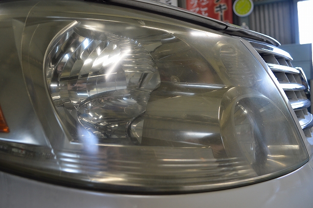 市販品でヘッドライトを磨かれた事があったらしいのですが、それほどキレイにならない事と、少しキレイになってもそれが持続しないのが悩みでした。