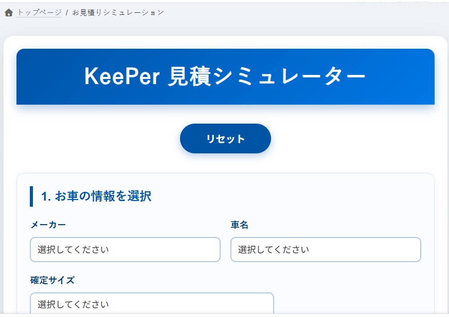 キーパープロショップ用お見積りシミュレーター設置
