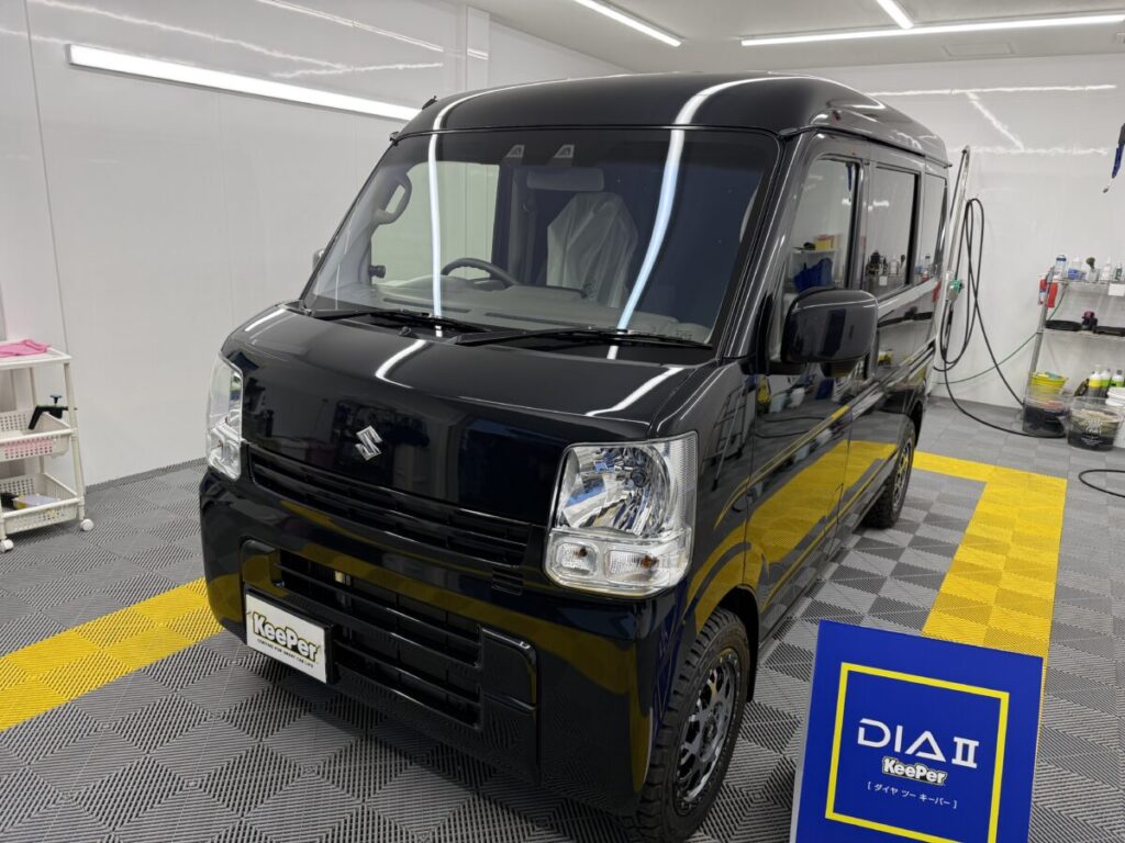 洗車キズが気になるというオーナー様のエブリィは研磨を行った後でダイヤⅡキーパーをコーティング致しました。