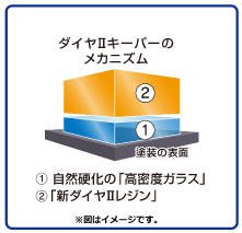 「ダイヤⅡキーパー」として生まれ変わりました。ダイヤモンドキーパーが築いた信頼の上に、最新ケミカルが生み出す2倍の艶と自浄性能を手に入れた、19年ぶりの大進化。