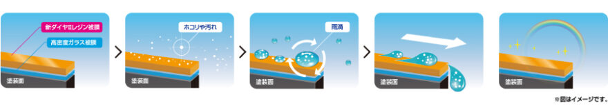 雨が降れば、まるで洗車したかのようにキレイになる自浄効果、洗車回数・激減!